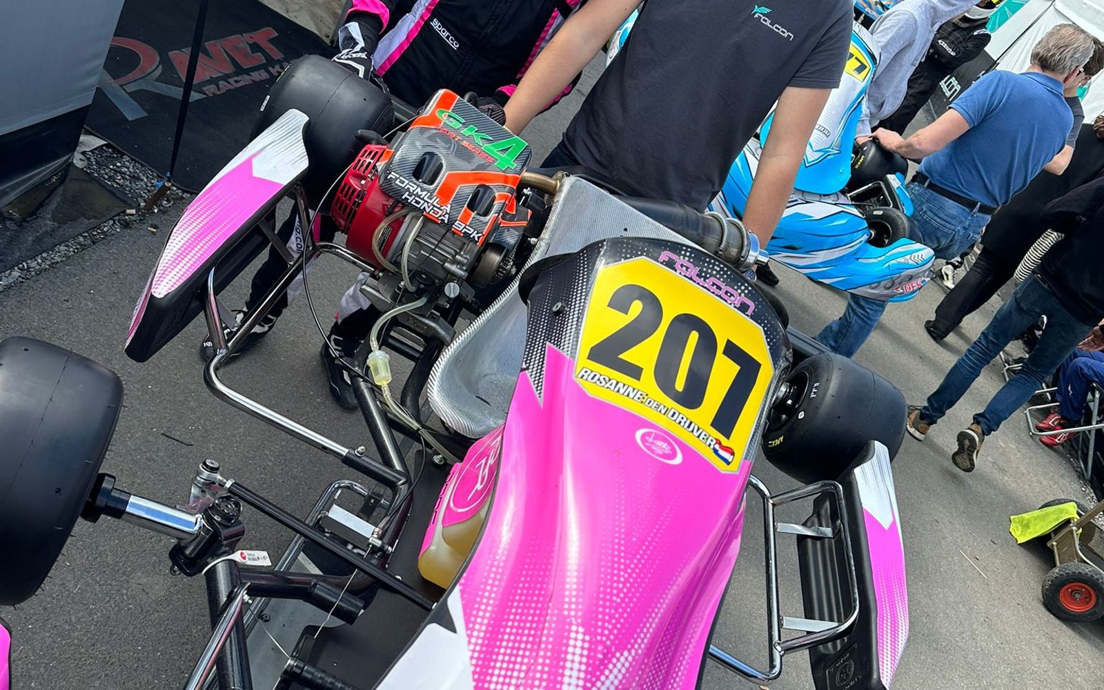 Door de pech in de kwalificatie moest ik al laatste starten. We hadden er een nieuwe motor op gezet, want de oude deed het niet meer… Toen we hem wouden proefstarten vloog er een stukje van een schroef af en een stukje plastic. Maar gelukkig met de nieuwe motor de race kunnen rijden, en hoe dat ging!!! Met de start gelijk al 5 posities kunnen pakken. En daarna door allemaal battles naar p6 kunnen vechten. De top 5 reed binnnen een seconde van elkaar dus hun hadden allemaal slipstream van elkaar. Helaas kon ik ze daardoor niet bijhouden, want ik reed alleen. Ik ben super blij met dit optimale resultaat! Na de pech in de kwalificatie toch nog super goed terug kunnen komen.